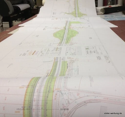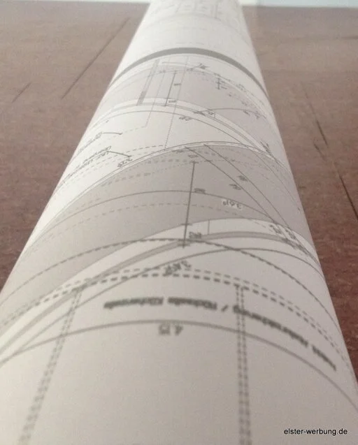 Da Papier auf einer Baustelle nicht immer vorteilhaft ist, drucken wir Bauzeichnungen auch als robuste PVC Pläne.